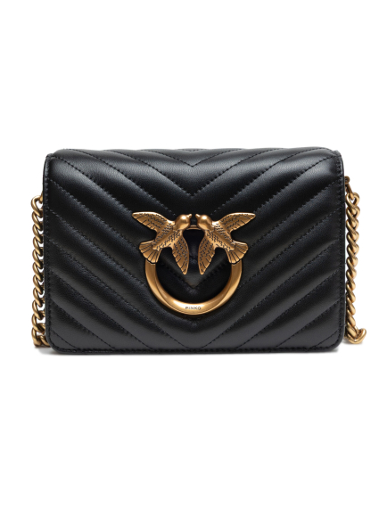 PINKOBlack Leather Love One Mini Shoulder Bag