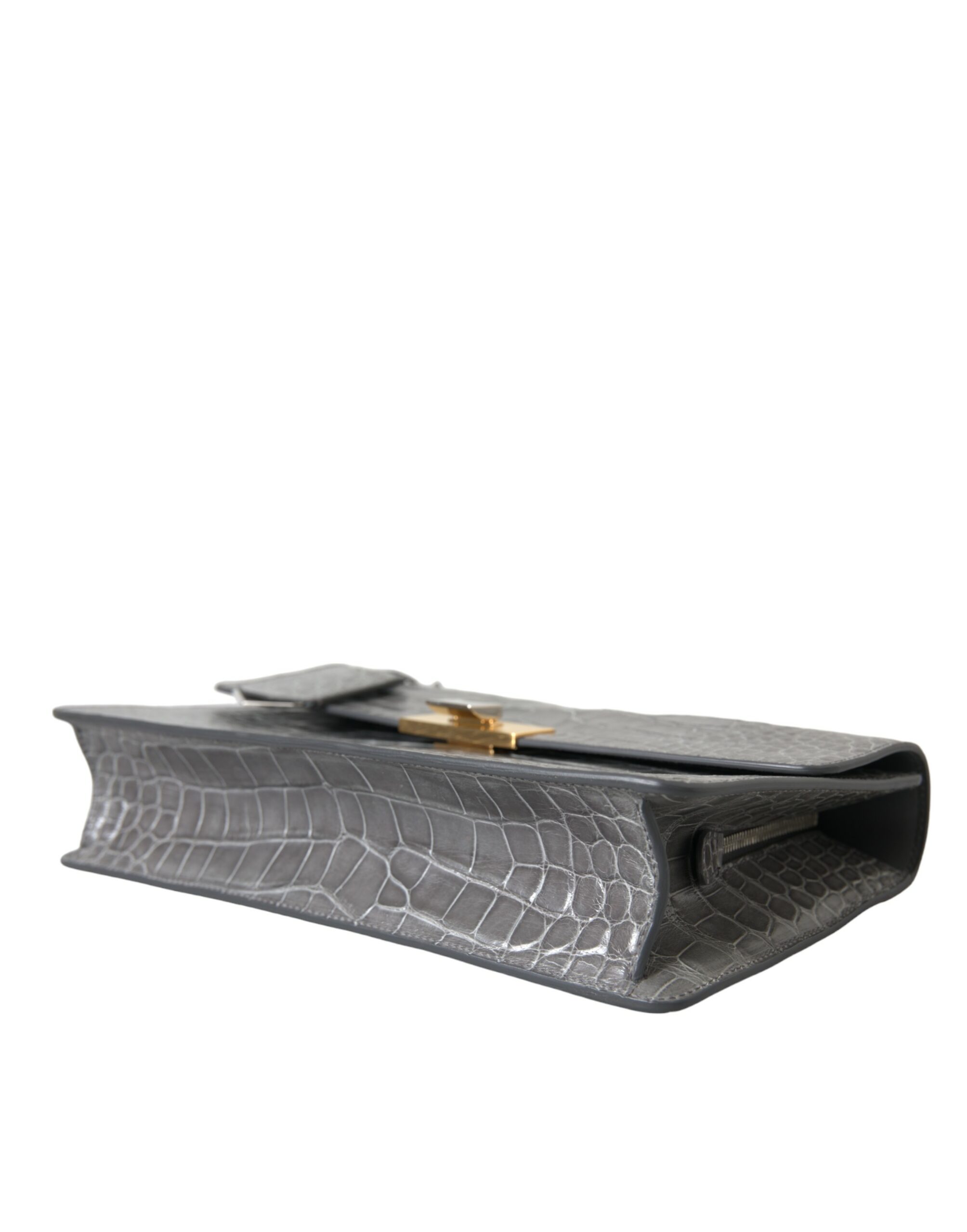 Gray Exotic Leather Medium Shoulder Hand Purse Bag