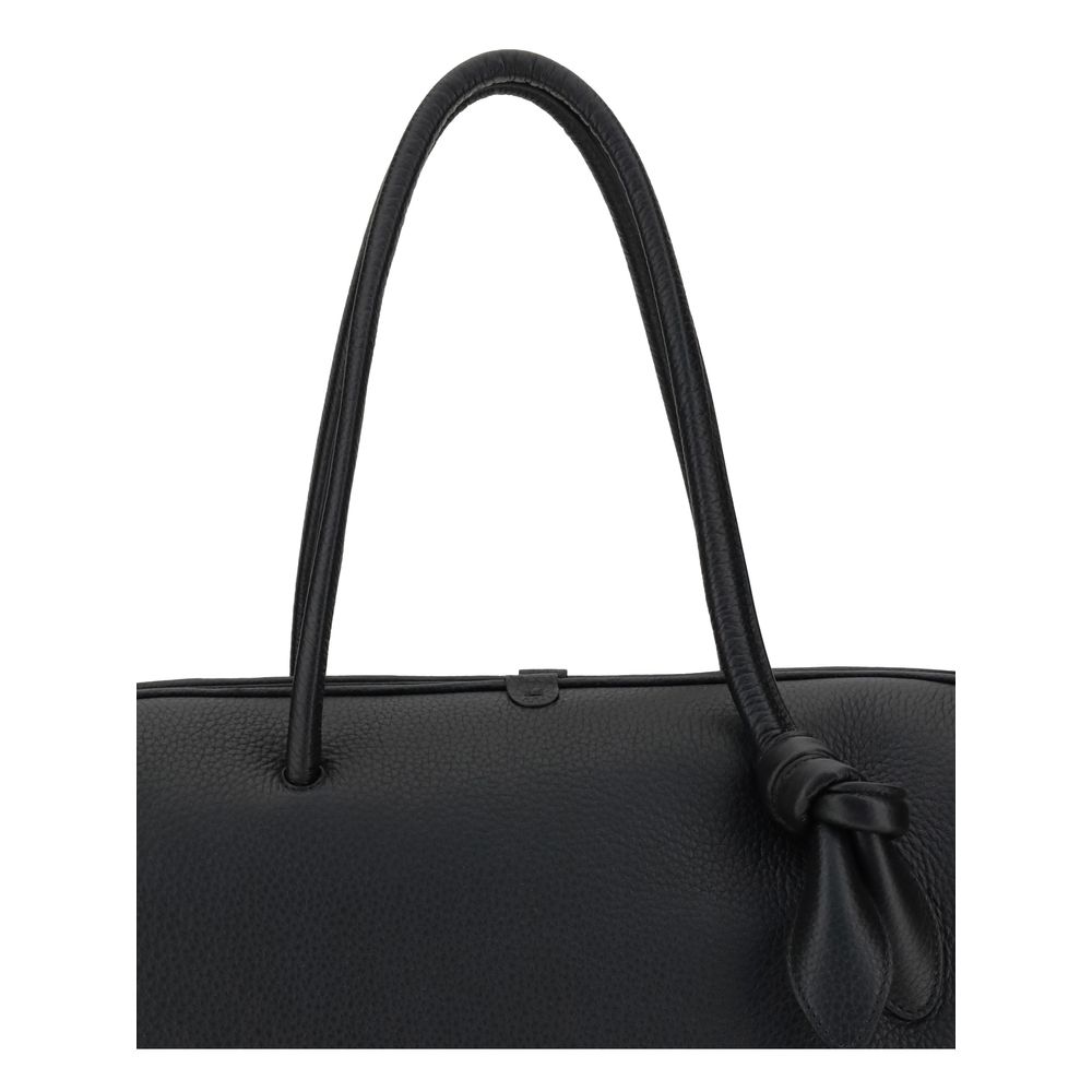 The Le Grand Tourisme Travel Bag by Jacquemus reinterprets the classic bowling bag in a modern and sophisticated key. Made of grained leather, it features a structured and functional design with a two-way zipper closure, interior zipper pocket and a large patch pocket on the front. The bow detail, the Maison’s poetic signature, adds a distinctive and feminine touch. Perfect for weekend getaways or as an elegant carry-on.